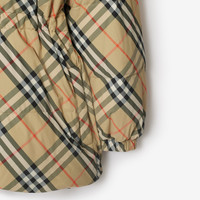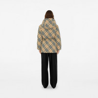 Product Details A hooded puffer jacket in nylon, filled with goose down and feathers. The reversible design switches from Burberry Check to a solid colour appliqued with the Equestrian Knight Design. Cut to a relaxed fit with a drawcord waist to adjust the silhouette. Part of Burberry Classics, wardrobe foundations with a unique Burberry slant. - Two-way zip closure - Drawcord hood and waist - Side zip pockets; reverse press-stud welt pockets - Elasticated cuffs - Appliqued Equestrian Knight Design at reverse - This item will be packaged in a recycled cotton tote unless the gift packaging option is selected at checkout. - Relaxed fit: a looser cut than our regular fit. Consider taking a size down. - Machine wash - Item 80942421 Size & Fit - Length: 74cm/29.1in (size UK S) - Model’s height: 177cm/5ft 7in. Model wears size UK S Fabric & Care - Outer: 100% polyamide - Reverse: 100% polyamide - Filling: 90% goose down, 10% goose feathers - Wadding: 100% polyester fibres - Imported