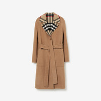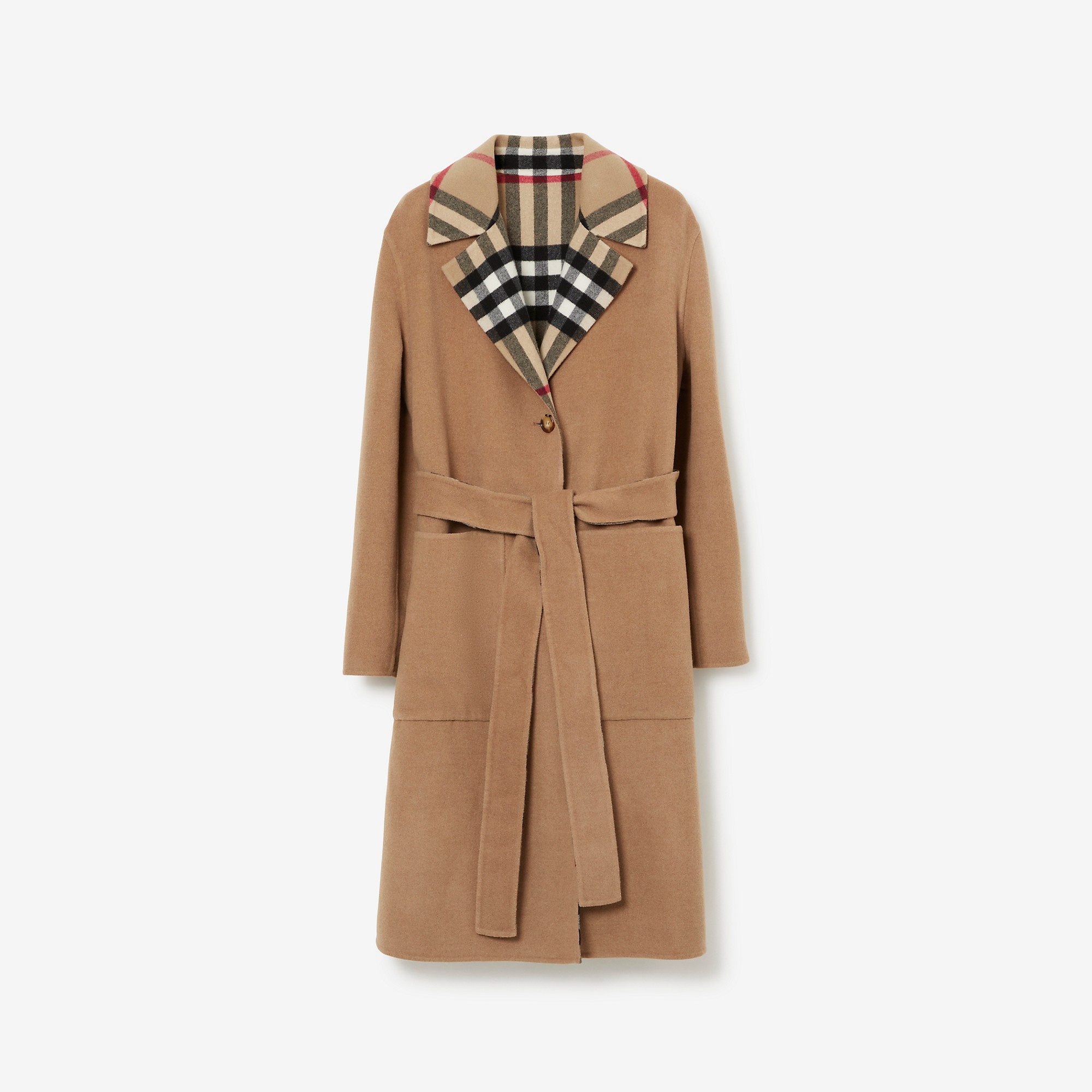 Product Details An Italian-made coat in double-faced wool. The reversible design switches from a solid colour to woven Burberry Check. The softly tailored style is cut to a relaxed fit and has a belt to adjust the shape. - Single-breasted button-through closure - Self-tie belt - Front patch pockets - Relaxed fit: a looser cut than our regular fit. Consider taking a size down. - Item 80581711 Size & Fit - Coat length: 104cm/40.9in (size UK 6) - Model’s height: 177cm/5ft 10in. Model wears size UK 6 Fabric & Care - 100% wool - Specialist dry clean - Made in Italy