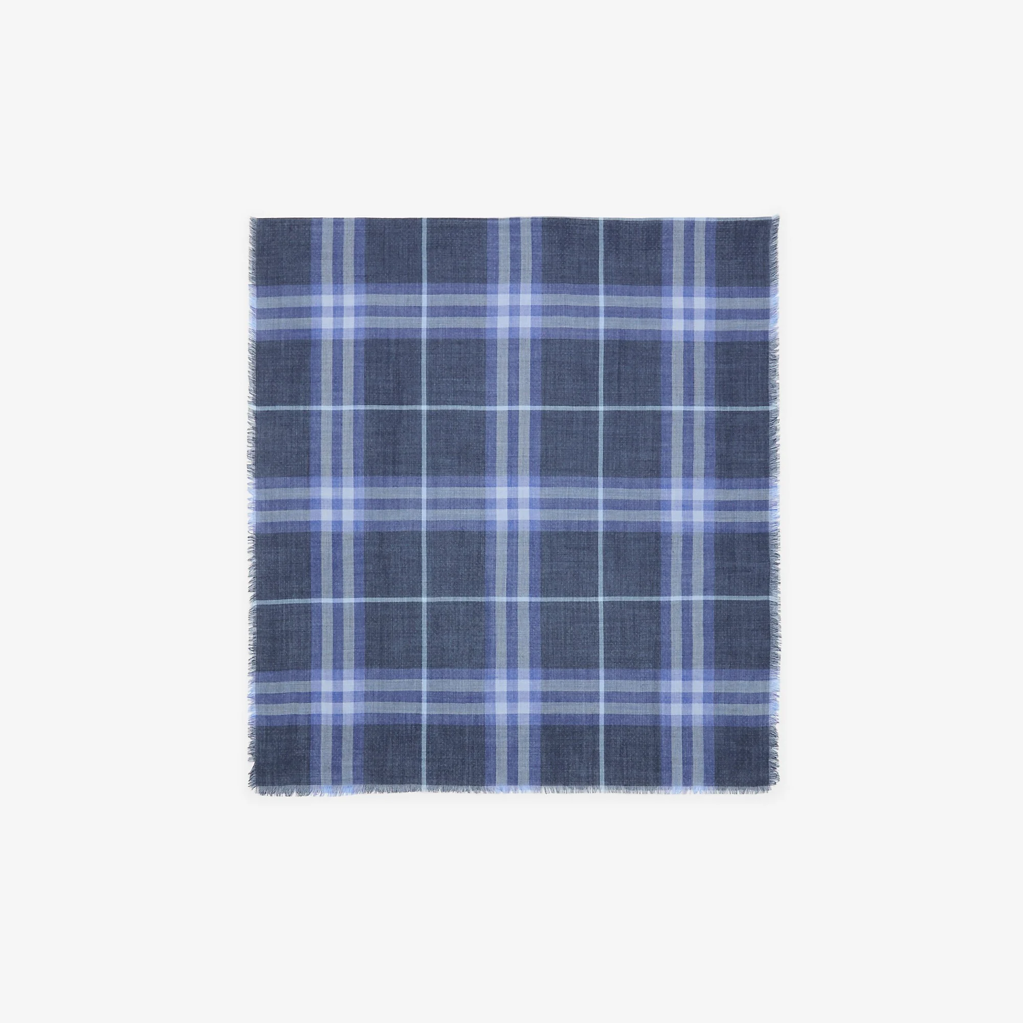 Product Details A scarf made in Italy from lightweight wool-silk gauze. The reversible design is printed with the Burberry Check in seasonal blue colourways. - Rectangular - Eyelash fringing at the edges - 200 x 90cm/78.7 x 35.4in - 52% wool, 48% silk - Dry clean - Made in Italy - Item 81229501 Size & Fit - 200 x 90cm/78.7 x 35.4in Fabric & Care - 52% wool, 48% silk - Dry clean - Made in Italy