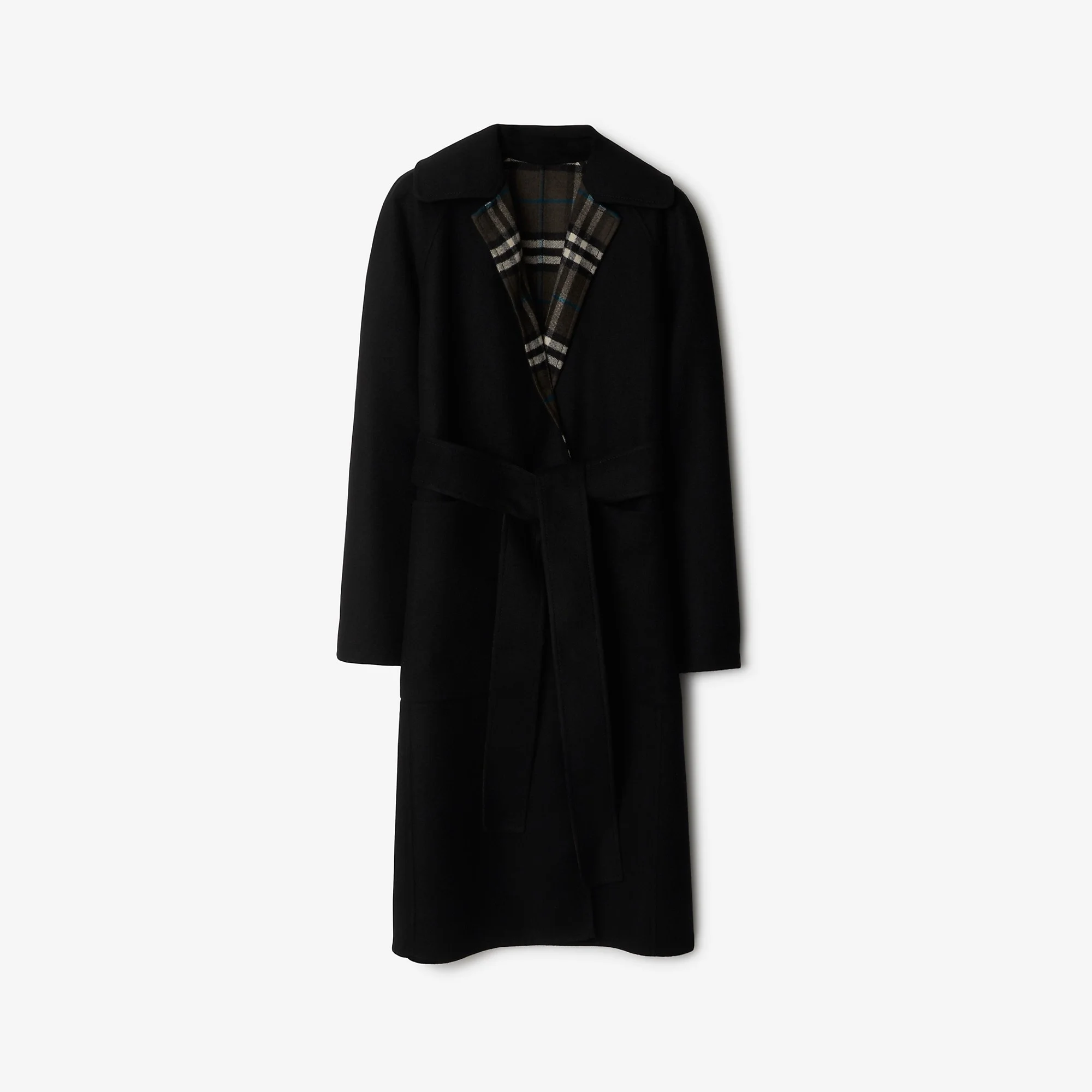 Product Details A wrap coat made in Italy from double-faced wool, reversing from a solid colour to the Burberry Check. The design is cut to a regular fit and has a detachable belt to adjust the shape. Part of Burberry Classics, wardrobe foundations with a unique Burberry slant. - Wrap closure - Side welt pockets; reverse patch pockets - Comes with a garment bag - Regular fit. Fits true to size, take your normal size. - Item 80938271 Size & Fit - Length: 104cm/40.9cm (size UK 6) Fabric & Care - 100% wool - Pocket lining: 100% viscose - Specialist dry clean - Made in Italy