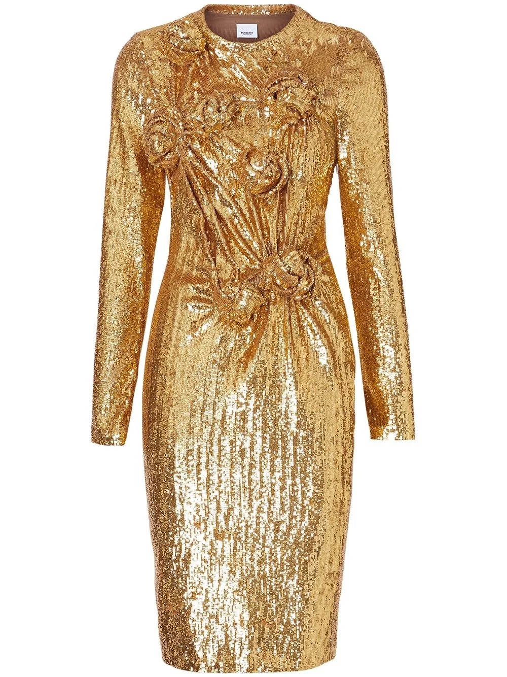 Hand-gathered Detail Sequinned Dress Highlights - Gold-tone - Side zip fastening - Rhinestone embellishment - Round neck - Long sleeves Made in Italy Composition Outer: Silk 95%, Spandex/Elastane 5% Lining: Polyamide 94%, Spandex/Elastane 6% SIZE & FIT Measurement LENGTH 37.4 in(95 cm) Washing instructions Specialist Cleaning