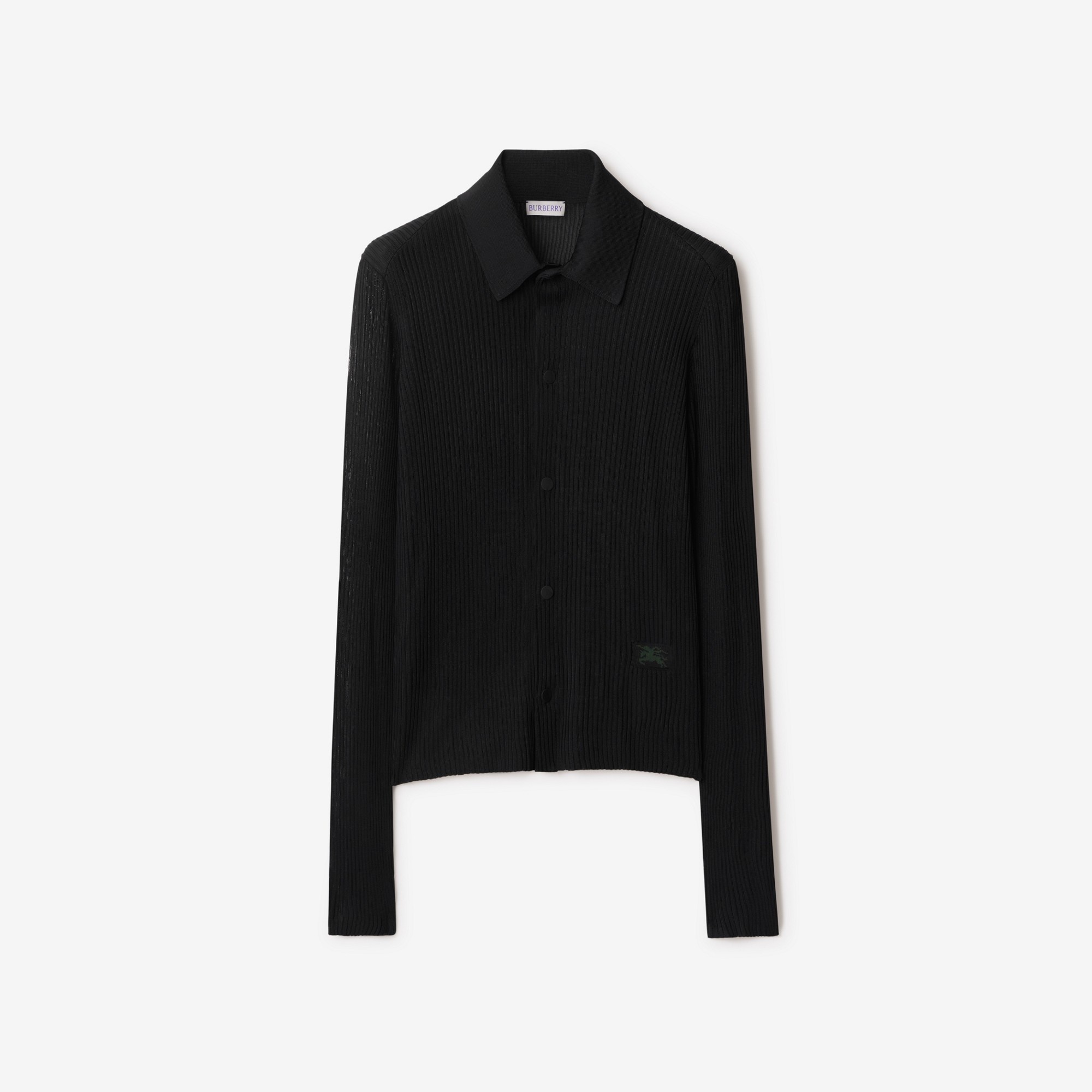 Product Details A long-sleeved shirt made in Italy from gauzy rib-knit viscose. The press-stud style is cut to a slim fit. - Press-stud closure - Point collar - Equestrian Knight Design at hem - Slim fit: this style is cut to a fitted silhouette. Fits true to size, take your normal size. - Item 80826871 Size & Fit - Length: 58cm/22.8in (size UK S) - Model's height: 176cm/5ft 10in. Model wears size UK S Fabric & Care - 100% viscose - Specialist dry clean - Made in Italy