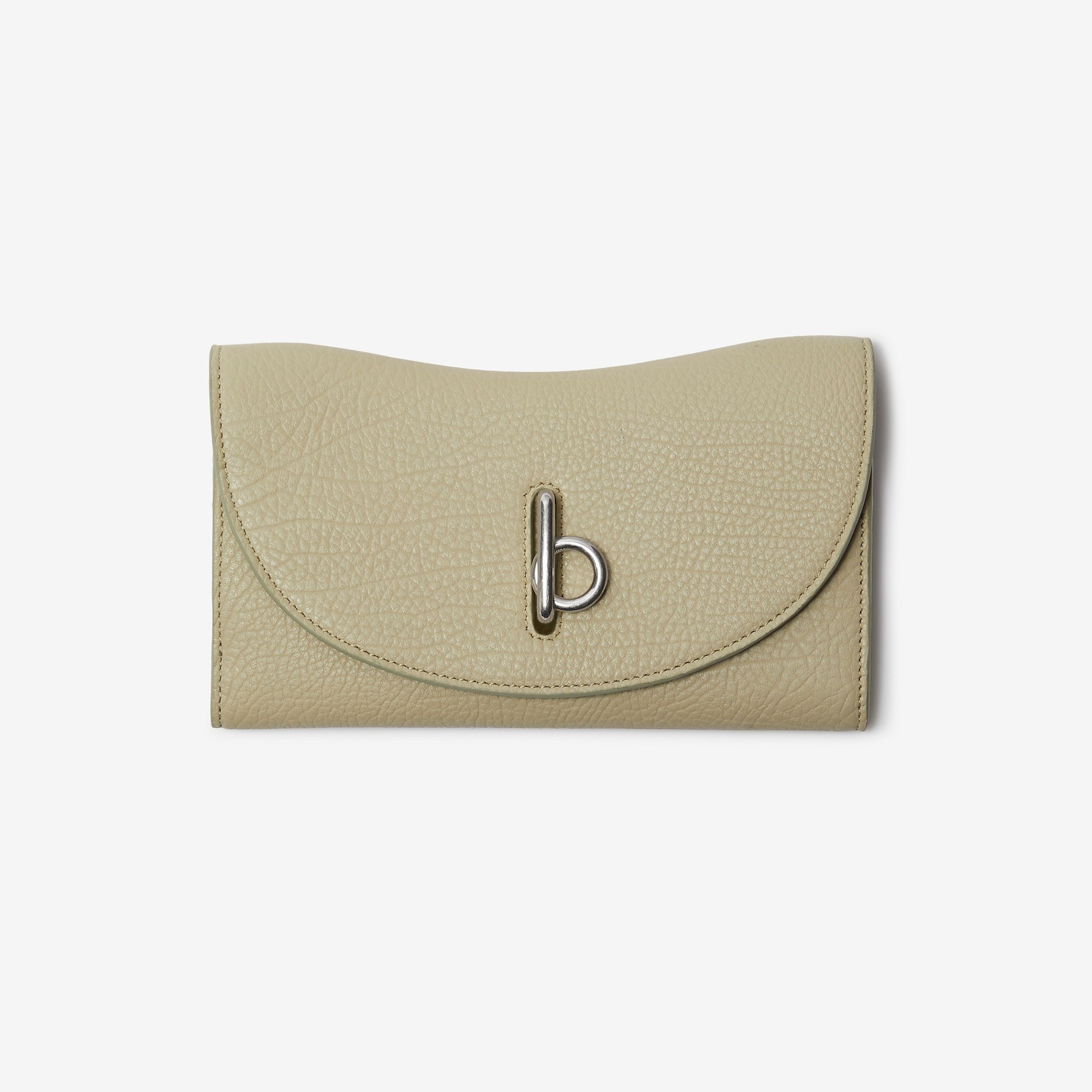 Product Details A large folding wallet made in Italy from grainy calf leather with an embossed check leather lining in contrasting vine green. The curved shape is inspired by equestrian saddles and our signature ‘b’ closure pivots in place to secure the flap. - Grainy calf leather - Foldover flap with ‘b’ closure - 10 card slots - Zip compartment - Note compartment - Interior slip pocket, exterior slip pocket - Hand-painted edges - Brushed metal hardware - Embossed Equestrian Knight Design at back - Embossed check leather lining - Comes with a dust bag - Item 80816521 Size & Fit - 19 x 3 x 11.5cm/7.5 x 1.2 x 4.5in Fabric & Care - Outer: 100% calf leather - Inner: 100% lambskin - Lining: 78% cotton, 22% polyurethane - Made in Italy