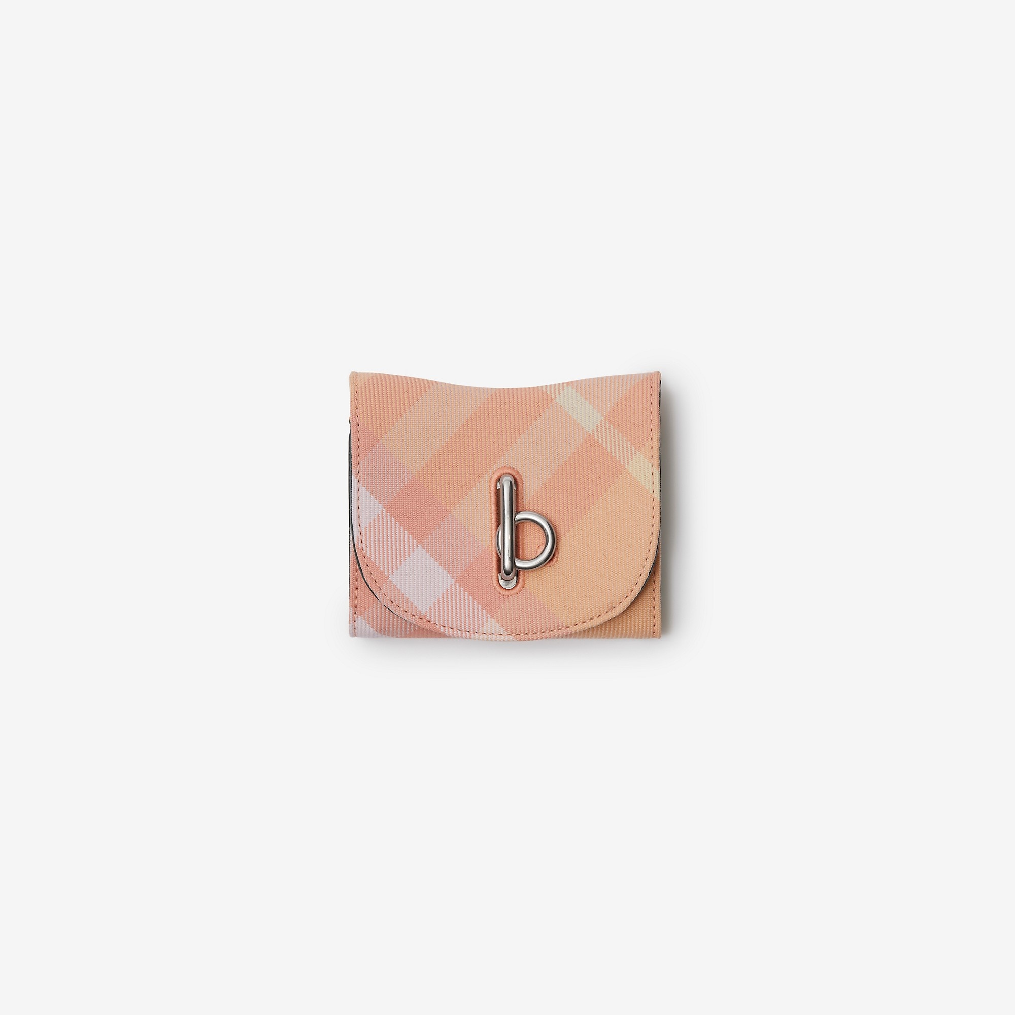 PRODUCT DETAILS A Burberry Check wallet in an Italian-woven wool blend with the ‘b’ closure at the flap. The curved shape is inspired by childhood rocking horses. - 11.5 x 3 x 10.5cm/4.5 x 1.2 x 4.1in Outer: 66% polyester, 34% wool Inner: 100% lambskin Lining: 78% cotton, 22% polyurethane Made in Italy Item 80817851