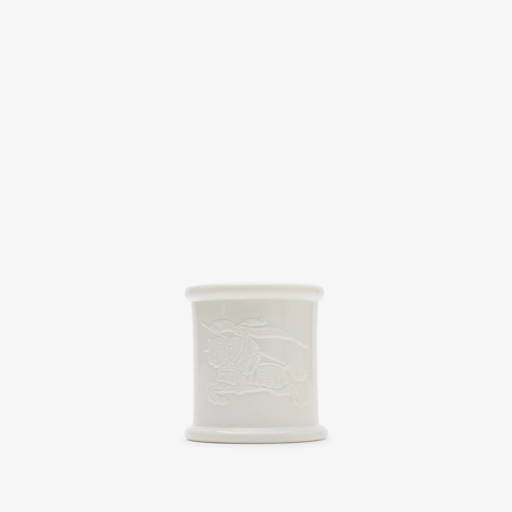 Product Details Burberry expands its home fragrance collection with the addition of a small candle housed in a bespoke vessel. Scented with smoky notes of woodfire and spicy clove, the wax is hand-poured into the bone china vessel – each hand-cast at a ceramics workshop in Stoke-on-Trent, a region renowned for its pottery craft. Crafted with a raised Equestrian Knight Design motif and Burberry logo at the base. Ideal for gifting, the custom designed presentation box is wrapped in a Burberry Check sleeve with an Equestrian Knight Design sticker to denote the scent inside. - Top notes: smoked scent, Tuscan leather, Madagascar cloves - Middle notes: Sardinian myrtle, Calabrian liquorice, cut wood - Base notes: Romagna birch wood, Tuscan oakmoss, Madagascar vanilla bourbon - Burn time: 40 hours - Filled candle weight: 400g - Item 81147811 Size & Fit - Candle dimensions: 9 x 8.5cm/3.5 x 3.4in. Box dimensions: 10 x 9 x 9cm/3.9 x 3.5 x 3.5in Fabric & Care - Candle: 70% paraffin wax, 30% vegetable derived triglycerides - Vessel: 100% bone china - Made in England