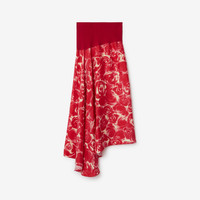 PRODUCT DETAILS An Italian-made asymmetric skirt in silk, woven with a rose pattern. - Length: 87cm/34.3in (size UK 6) 100% silk Trim: 96% viscose, 3% polyamide, 1% elastane Specialist dry clean Made in Italy Item 80830901