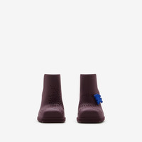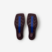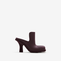 PRODUCT DETAILS A pair of mules in rubber debossed with our Equestrian Knight Design. Made in Italy with Burberry lettering at the sole. Upper: 100% rubber Lining: 60% sheep leather, 40% paper Sole: 80% rubber, 20% ABS Heel: 100% thermoplastic polyurethane Made in Italy Item 80803471