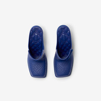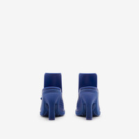 PRODUCT DETAILS A pair of mules in rubber with perforations in the shape of our Equestrian Knight Design. Made in Italy with Burberry lettering at the sole. - Heel height: 9cm/3.5in Upper: 100% rubber Lining: 100% sheep leather Heel: 100% thermoplastic polyurethane Sole: 80% rubber, 20% ABS Made in Italy Item 80864491