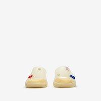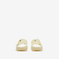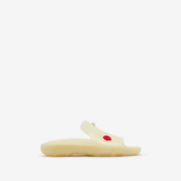 PRODUCT DETAILS A pair of rubber slides made in Italy with a contoured sole. The perforated upper features detachable rose and Equestrian Knight Design charms. Upper: 100% rubber Lining: 60% EVA, 40% rubber Sole: 100% rubber Made in Italy Item 80817771