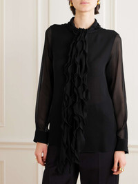 Ruffled silk-chiffon blouse Black