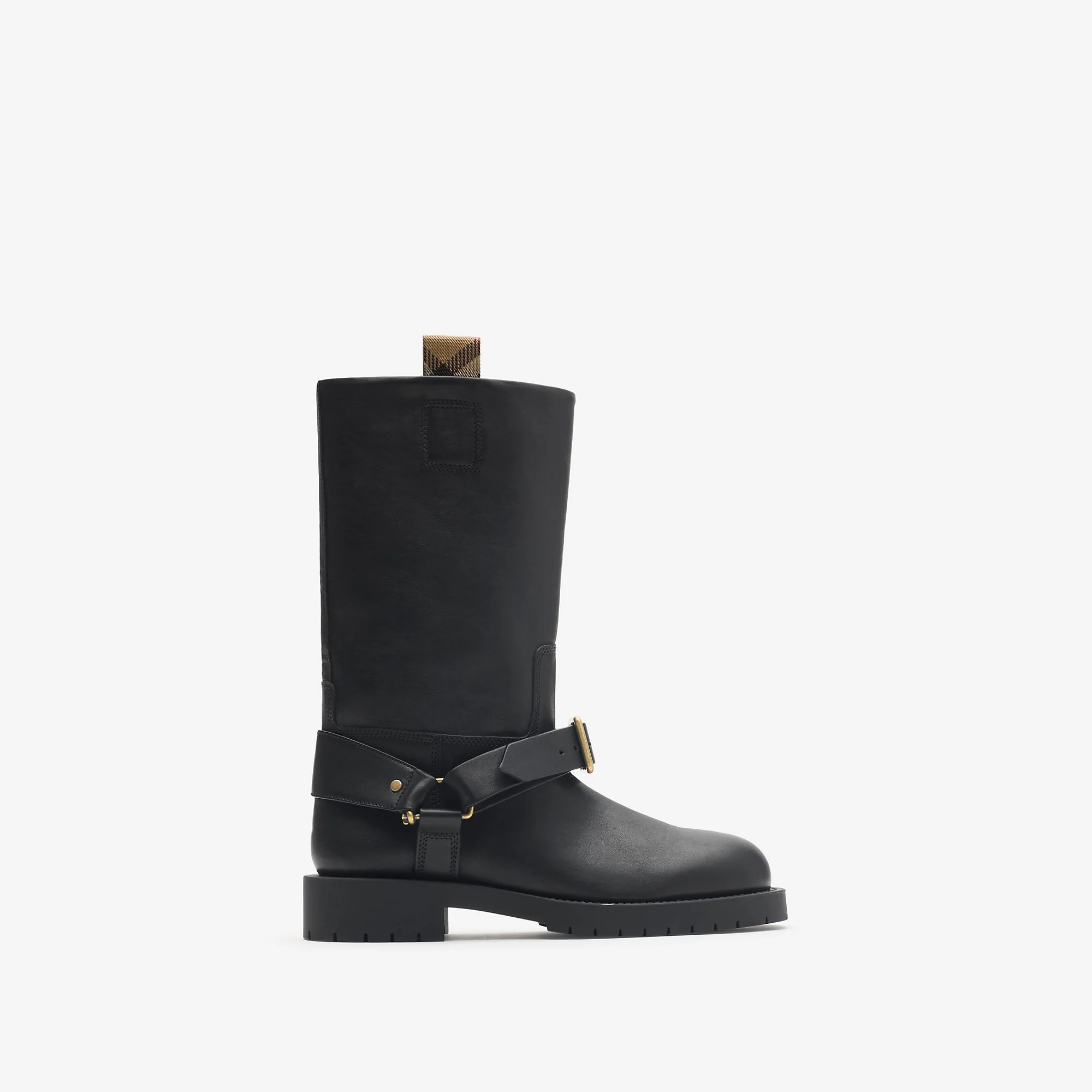 Product Details Equestrian-inspired boots made in Italy from soft calf leather, finished with B buckle straps and pull tabs woven with the Burberry Check in our signature sand colourway. The sole is detailed with our Equestrian Knight Design in contrasting Knight Blue. - Buckled harness strap - Rounded toe - Engraved Burberry lettering at buckles - Equestrian Knight Design at sole - Comes with a dust bag - Item 81117371 Size & Fit - Length from top of heel to top of boot: 27cm/10.6in. Top circumference: 33cm/13in Fabric & Care - Upper: 80% calf leather, 15% polyamide, 5% polyester - Trim: 95% zinc alloy, 5% copper - Lining: 85% calf leather, 10% polyester, 5% polyurethane - Sole: 100% thermoplastic polyurethane - Made in Italy