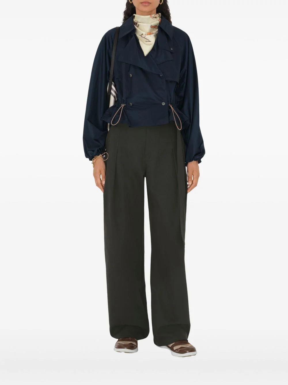 satin hooded trench jacket Highlights - Navy blue - Double-breasted button fastening - Drawstring waist - Long sleeves - Elasticated cuffs Imported Composition Fabric 100% Washing instructions Read Manufacturer Guidelines