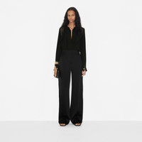 PRODUCT DETAILS High-waisted trousers in Italian-woven satin. - Trouser inside leg length: 85cm/33.5in. This is based on a size UK 6. 60% acetate, 40% viscose Pocket lining: 100% silk Concealed hook-and-bar, button and zip fly closure Side slip pockets, back welt pockets Specialist dry clean Imported Item 80711911