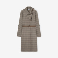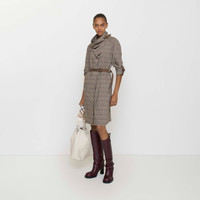 Product Details Regular fit. Fits true to size, take your normal size. A belted dress in wool with a hint of stretch, woven with the Burberry Check. The style is cut to a regular fit with a draped neckline, which can be worn open or secured like a scarf with a detachable suede throat latch. Use the matching B buckle straps to adjust the sleeve length. - Button closure - B buckle belt - Item 81181751 Size & Fit - Regular fit. Fits true to size, take your normal size. - Length: 100cm/39.4in (size UK 8) - Model’s height: 180cm/5ft 11in. Model wears size UK 8 Fabric & Care - 97% wool, 3% elastane - Trim: 100% calf suede - Pocket lining: 100% viscose - Buttons: mother-of-pearl - Specialist dry clean - Imported