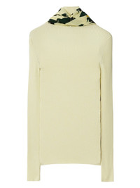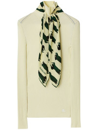scarf-detailed knit jumper Highlights - Light yellow/dark green - Silk scarf detail - Duck print - Logo print to the front - Ribbed knit - High neck - Long sleeves - Straight hem Made in Italy Composition Silk 100%, Viscose 91%, Polyamide 7%, Elastane 2% Washing instructions Dry Clean Only