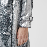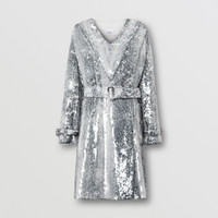 PRODUCT DETAILS A V-neck dress patterned with a monochrome animal print – embellished with light-catching sequins and lined with silk. The belted style features polished D-rings and belted cuffs – in homage to our signature trench. The design made its debut in Riccardo Tisci’s Autumn/Winter 2021 womenswear collection, a bold interpretation of modern femininity that celebrates freedom of expression. Dress length: 99cm/40in. This is based on a size UK 6 as proportions change slightly according to size. Model’s height: 177cm/5ft 10in. Model wears size UK 6. Outer: 100% polyester Trim: 100% polyester Lining: 100% silk Double-breasted closure Button-through welt pockets Signature details: belted cuffs, D-ring belt Specialist dry clean Made in Italy 80471691