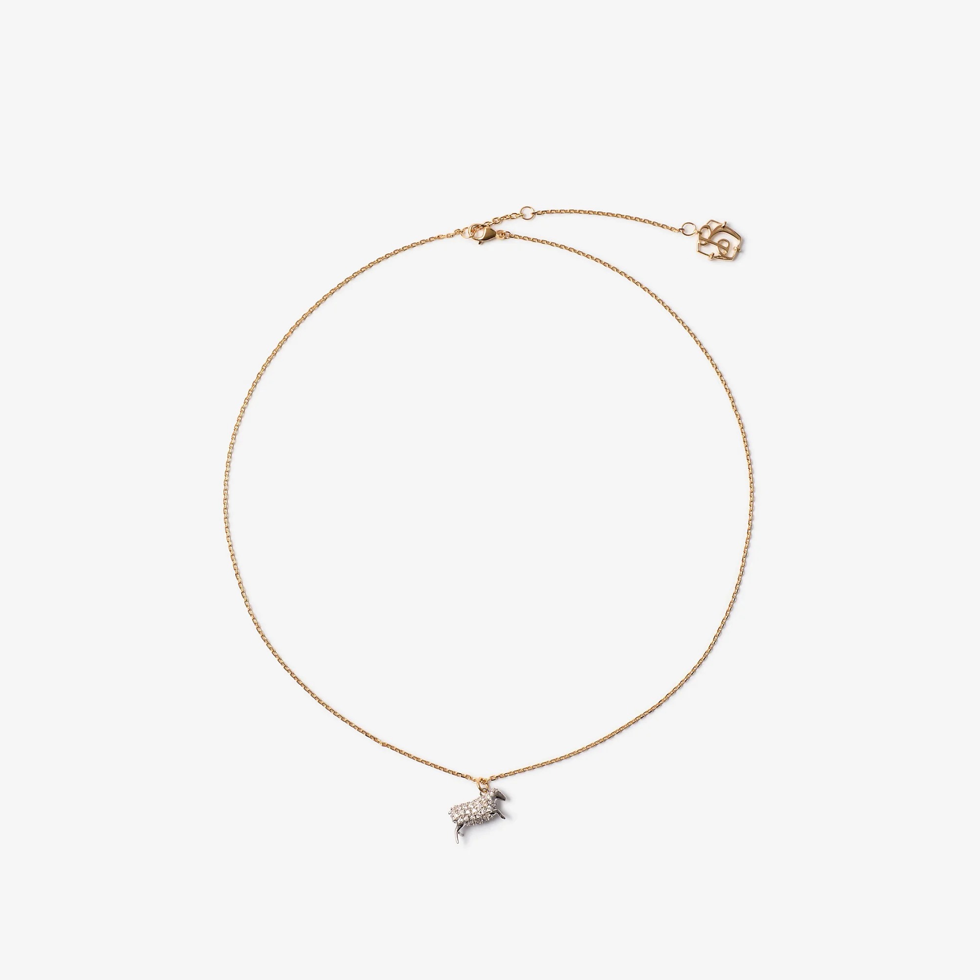 Product Details A chain-link necklace with gold and palladium plating, made in Italy. Evoking the British countryside, the adjustable design features a sheep charm decorated with cubic zirconia. - Clasp closure - B-shaped charm at back - Engraved Burberry lettering at sheep charm - Comes with a dust bag - Item 81120291 Size & Fit - Min. length: 58cm/22.8in. Max. length: 63cm/24.8in Fabric & Care - 100% brass with gold and palladium plating - Trim: 100% cubic zirconia - Made in Italy