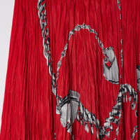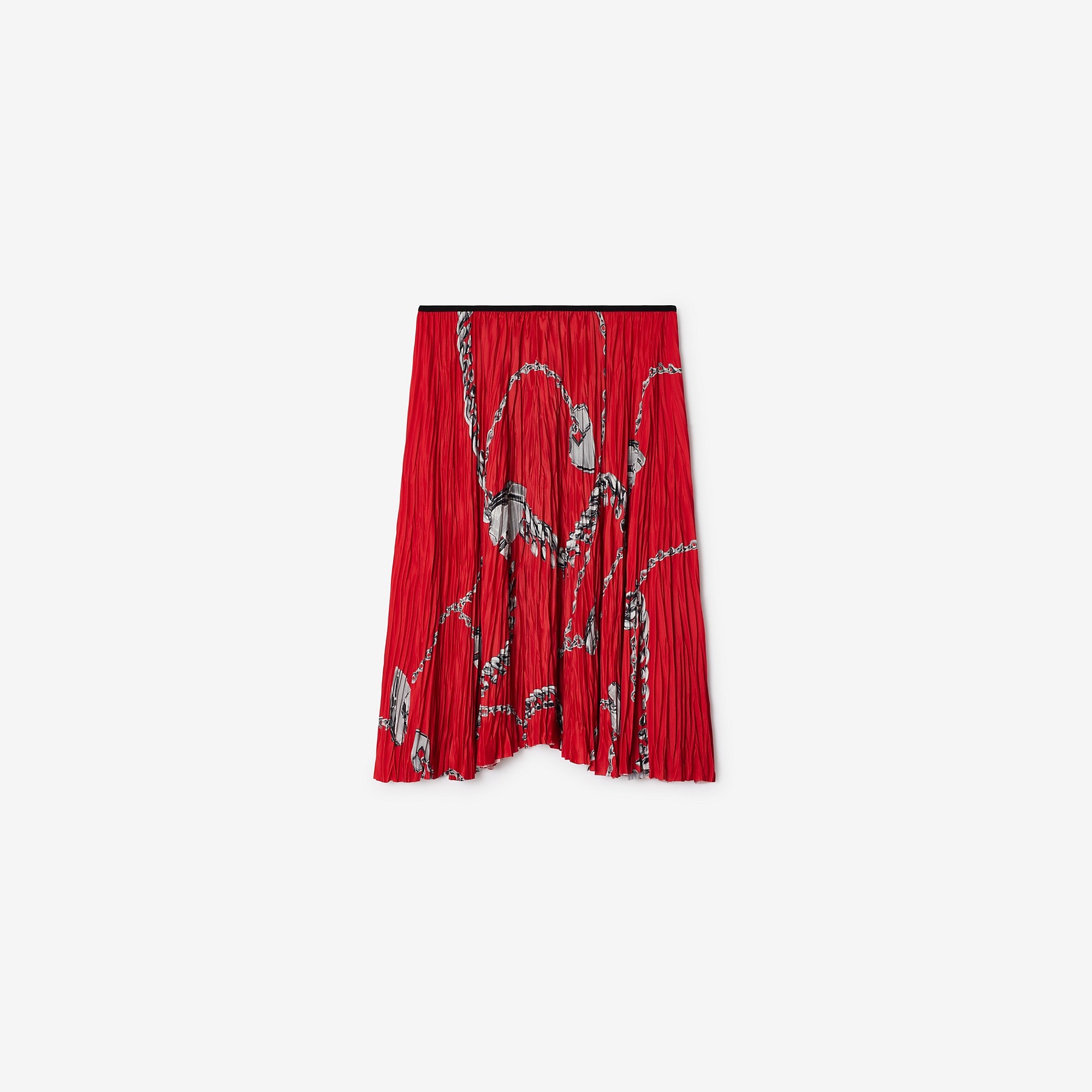 PRODUCT DETAILS A pleated skirt in heavyweight jersey, printed with hand-painted artwork featuring our jewellery and bag hardware. The style is cut with a subtle asymmetric hem and finished with a contrasting grosgrain waistband. - Length: 68cm/26.8in (size UK 6) - Model’s height: 176cm/5ft 9in. Model wears size UK 6 100% polyester Specialist dry clean Made in Italy Item 80892641