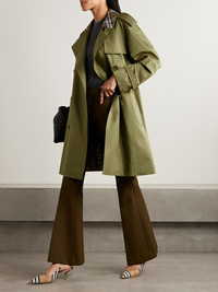 Belted double-breasted cotton-twill trench coat Green