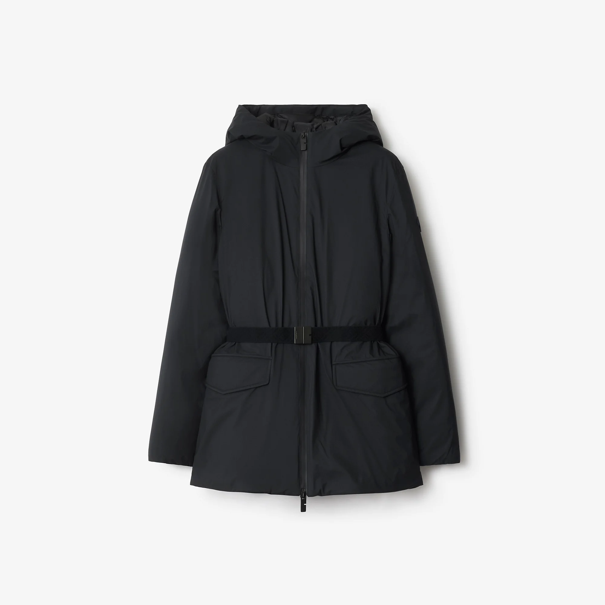 Product Details Regular fit. Fits true to size, take your normal size. A hooded coat in lightweight ripstop nylon, padded with goose down and feathers. The design is lined with fleece at the side pockets and appliqued with a leather Knight stamp, an archival motif from the 1980s. Cut to a regular fit with an elasticated Burberry Check belt to cinch the waist. - Two-way zip closure - Elasticated belt - Front press-stud flap pockets, side zip pockets - Storm cuffs - Engraved Burberry lettering at buckle - Leather patch with Equestrian Knight Design at sleeve - Comes with a garment bag - Machine wash - Item 81102601 Size & Fit - Regular fit. Fits true to size, take your normal size. - Length: 75cm/29.5in (size UK S) - Model’s height: 175cm/5ft 9in. Model wears size UK S Fabric & Care - Outer: 100% polyamide bonded to 100% polyamide - Trims: 100% leather; 79% polyester, 20% polyamide, 1% elastane - Belt: 82% polyamide, 10% elastane, 8% polyester - Lining: 100% polyamide - Filling: 90% goose down, 10% goose feathers - Wadding: 100% polyester fibres - Imported