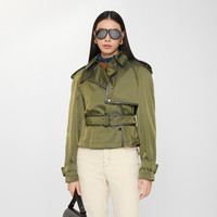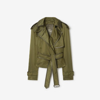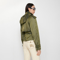 Product Details Slim fit: this style is cut to a fitted silhouette. Fits true to size, take your normal size. An iconic Burberry silhouette, recast in a lightweight changeant nylon blend – an archive-inspired fabric woven with contrasting yarns for an iridescent effect. The leather-trimmed trench coat is tailored to a slim fit with raglan sleeves that create a softly curved shoulder. - Double-breasted press-stud closure - Hook collar closure - Throat latch - Epaulettes - Storm shield at back - Gun flap at shoulder - Metal B buckle belt and cuffs - Side welt pockets - Comes with a garment bag - Item 81208671 Size & Fit - Slim fit: this style is cut to a fitted silhouette. Fits true to size, take your normal size. - Length: 54.6cm/21.5in (size UK 6) - Model’s height: 178cm/5ft 10in. Model wears size UK 6 Fabric & Care - Outer: 72% polyamide, 28% polyester - Trim: 100% lambskin - Sleeve lining: 100% viscose - Pocket lining: 100% viscose - Specialist dry clean - Imported