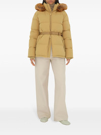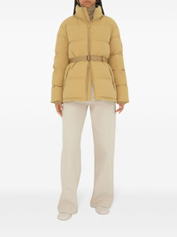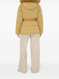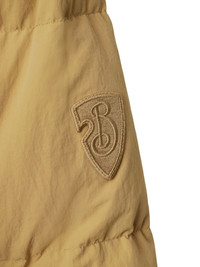 puffer jacket Highlights - Ochre yellow - Textured finish - Padded design - Quilted - Front two-way zip fastening - Detachable hood - Stand-up collar - Logo patch at the sleeve - Ribbed cuffs - Detachable waist belt - Two side zip-fastening pockets - Straight hem Imported Composition Lining: Wool 100%, Polyamide 100%, Polyester 100%, Goose Down 90%, Goose Feather 10% Outer: Polyamide 100%