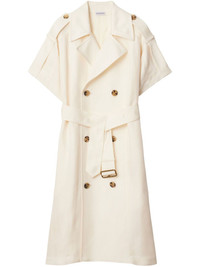 trench dress Highlights - Light beige - Double-breasted button fastening - Belted waist - Wide notch lapels - Short sleeves Imported Composition Lining: Viscose 100% Outer: Viscose 100%, Buffalo Horn 100%