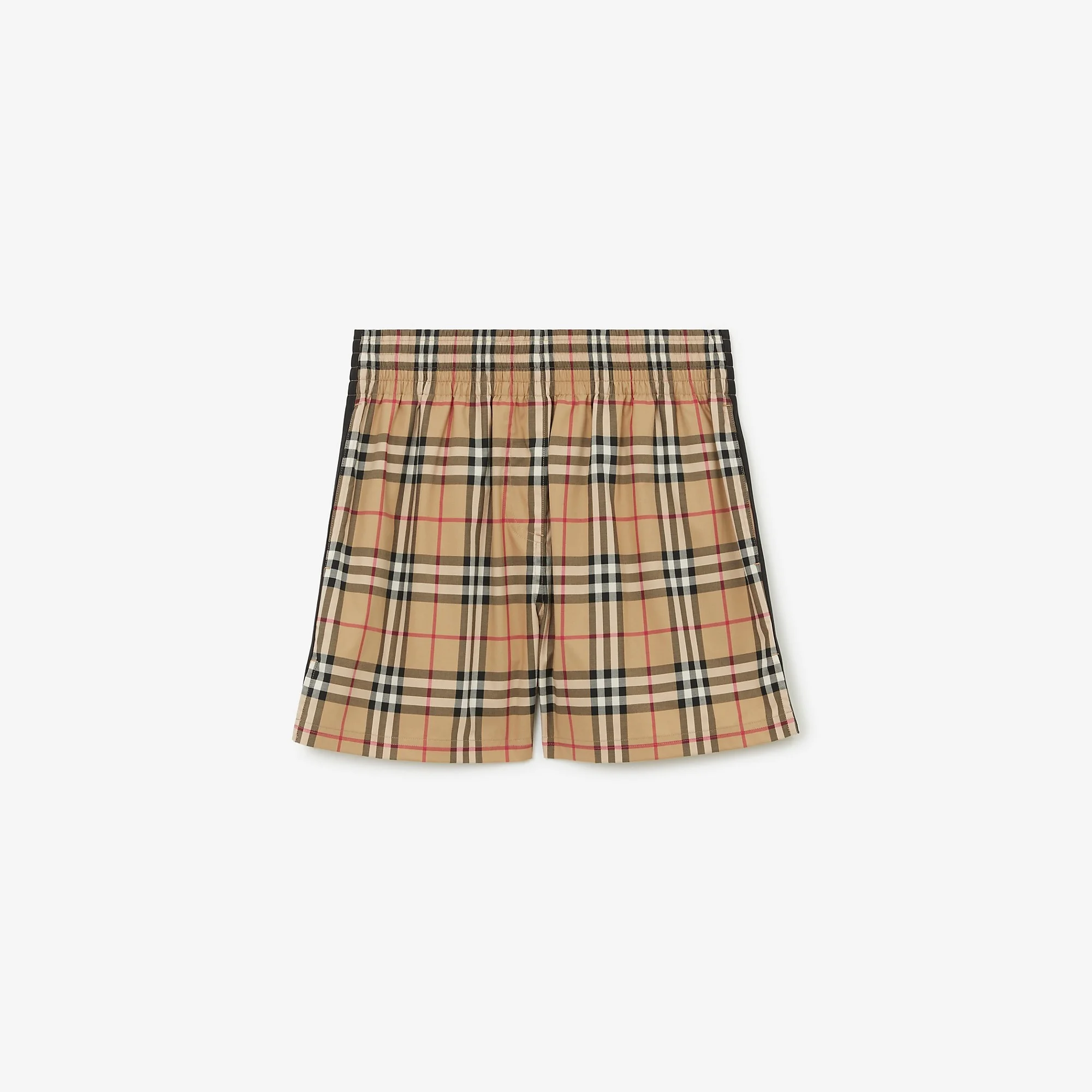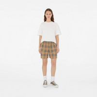 Product Details Shorts in Burberry Check cotton twill. The style is cut to a regular fit and trimmed with piping at the sides. - Elasticated waist - Side slip pockets - Regular fit. Fits true to size, take your normal size. - Machine wash - *Containing organic cotton - Item 81118751 Size & Fit - Inside leg length: 10.5cm/4.1in (size UK 6) - Model's height: 177cm/5ft 10in. Model wears size UK 6 Fabric & Care - 100% cotton* - Imported