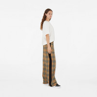 Product Details A pair of wide-leg trousers made from cotton woven in Italy with the Burberry Check. The high-waisted silhouette is cut to a relaxed fit and framed with contrasting twill side stripes. - Elasticated waist - Side slip pockets, back welt pockets - Relaxed fit: a looser cut than our regular fit. - Machine wash - Item 81118741 Size & Fit - Inside leg length: 82cm/32.3in (size UK 6) - Model’s height: 178cm/5ft 10in. Model wears size UK 6 Fabric & Care - 100% cotton - Trim: 100% cotton - Imported