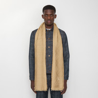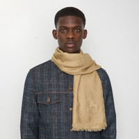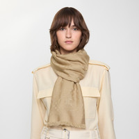 Product Details A lightweight scarf made in Italy from soft wool silk, jacquard-woven with a tonal Burberry Check. The style is embroidered with the Knight stamp, an archival motif from the 1980s. - Rectangular - Eyelash fringing at the edges - Embroidered Equestrian Knight Design at corner - Item 81124591 Size & Fit - 200 x 90cm/78.7 x 35.4in Fabric & Care - 52% wool, 48% silk - Dry clean - Made in Italy