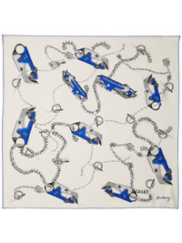 Knight hardware-print scarf Highlights - Cream white/silk - Royal blue - All-over graphic print - Rectangle shape Made in Italy Composition Silk 100% SIZE & FIT Measurement Length 35.43 in(90 cm) WIDTH 35.43 in(90 cm)