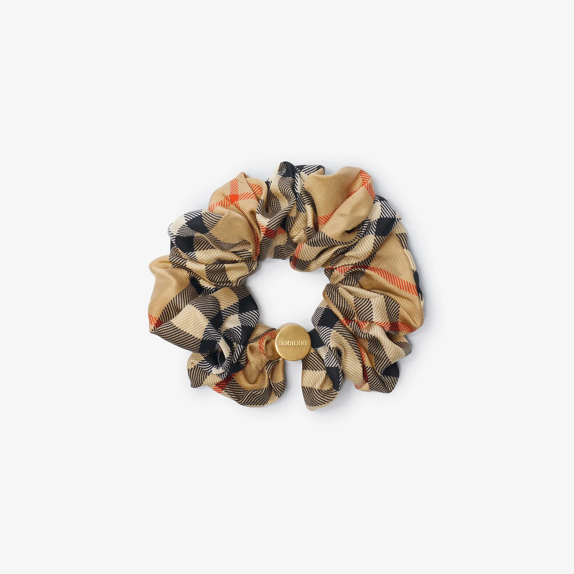 Product Details A scrunchie made in Italy from silk twill woven with the Burberry Check. The design features a metal tag engraved with our logo and Equestrian Knight Design. - Item 81197261 Fabric & Care - 100% silk - Specialist dry clean - Made in Italy