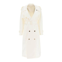 Elevate your style with this lightweight Burberry trench coat made of pure silk twill. This double-breasted design features raglan sleeves, a notched collar, epaulettes on the shoulders, welt pockets, adjustable cuffs, and a matching belt with a B-shaped buckle. Unlined for a comfortable fit. Perfect for the modern woman. Model height: 177 cm, UK size 6. Designer color: White Designer ID: MIINTO-a14a4755058de8807d4c Material & Care 100% SE