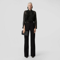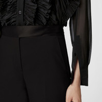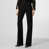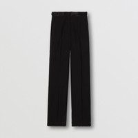 PRODUCT DETAILS Straight-leg trousers tailored in Italian-woven wool. The design is styled with a high-rise waist and trimmed in silk satin. Trouser inside leg length: 85cm/33.5in. This is based on a size UK 6 as proportions change slightly according to size. Model’s height: 177cm/5ft 9in. Model wears size UK 6. 100% wool Trim: 100% silk Buckled side adjusters Concealed button closure Side slip pockets, back button-through welt pockets Specialist dry clean Made in Italy 80580341