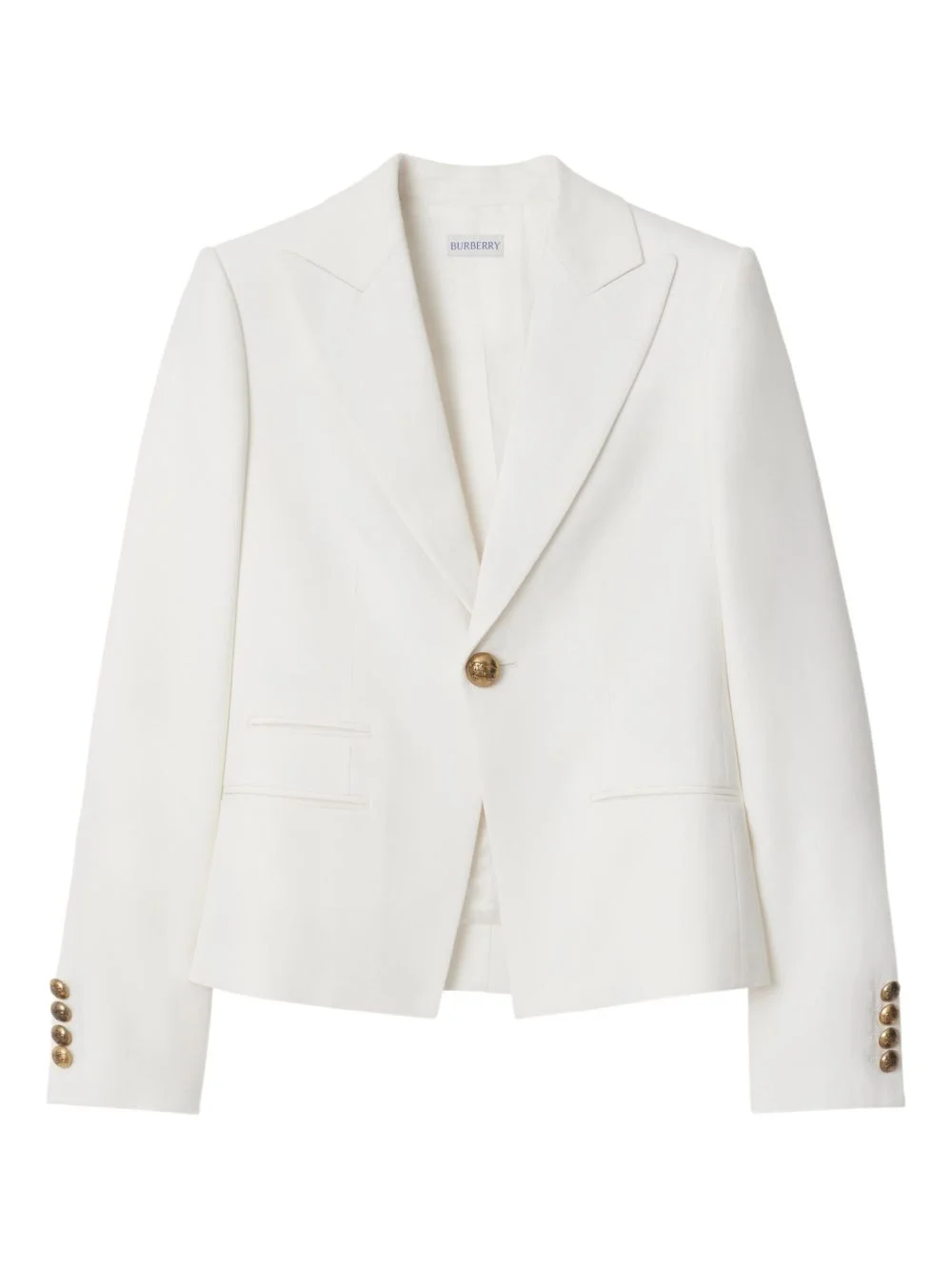 single-breasted blazer Highlights - White - Front button fastening - Two side welt pockets - Long sleeves - Buttoned cuffs Made in Italy Composition Outer: Wool 100% Lining: Viscose 100% Washing instructions Dry Clean Only