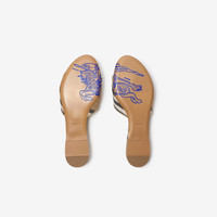 Product Details A pair of Sloane slides made in Italy from a cotton blend, woven with the Burberry Check in signature sand beige and intertwined with metallic threads. The insole is quilted for comfort and the leather sole is embossed with our Equestrian Knight Design. - Almond-shaped toe - Quilted insole - Equestrian Knight Design at sole - Comes with a dust bag - Item 81195281 Fabric & Care - Upper: 74% polyester, 21% cotton, 3% metallised polyester, 2% polyamide - Lining: 100% sheep leather - Sole: 100% leather - Made in Italy