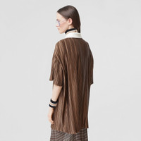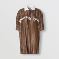 Slogan Print Satin Plissé Polo Shirt