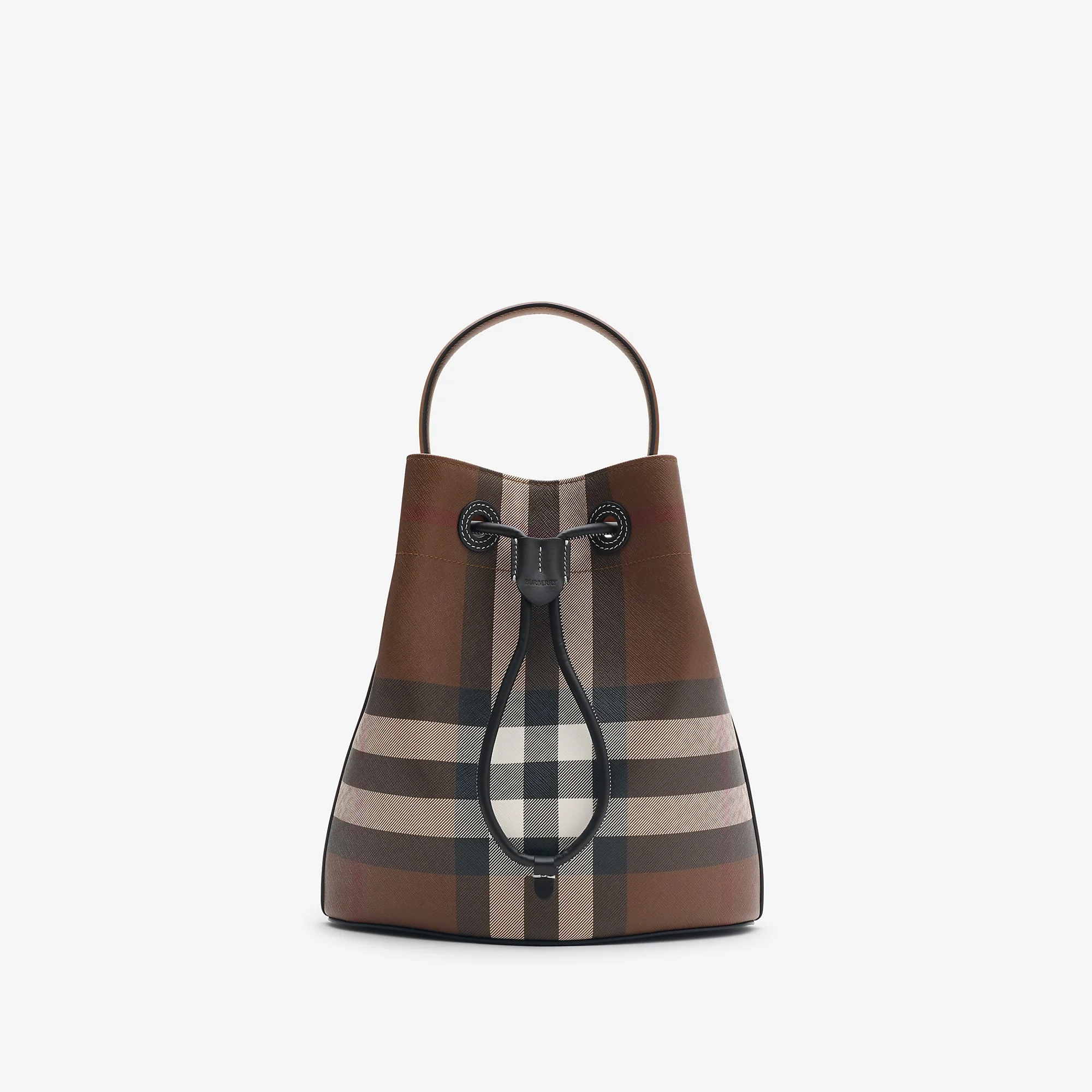 Product Details A bucket bag made in Italy from a coated cotton blend printed with the Burberry Check. The softly structured shape is lined in a cotton blend and features a drawcord closure with a leather shield toggle. Carry by the top handle or wear as a crossbody bag using the adjustable strap - Top handle - Detachable, adjustable leather strap - Drawcord closure - Interior slip pocket - Hand-painted edges - Polished metal hardware - Cotton blend lining - Comes with a dust bag - Item 81122391 Size & Fit - 26 x 16 x 26cm/10.2 x 6.3 x 10.2in. Min. strap drop: 47.5cm/18.7in. Max. strap drop: 52.5cm/20.7in Fabric & Care - Outer: 55% polyurethane, 25% polyester, 20% cotton* - Trim: 100% calf leather - Lining: 60% cotton, 40% polyester - *The main material of this product is made with at least 30% bio-based materials - Bio-based materials are derived from renewable natural resources such as plants - Made in Italy