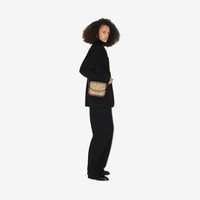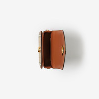 PRODUCT DETAILS A structured satchel made in Italy from Burberry Check canvas and topstitched calf leather. The compact design features a gold-plated push-button closure in the shape of our logo graphic. Carry as a crossbody with the adjustable strap or detach to switch to a clutch. - 19 x 6 x 16cm/7.5 x 2.4 x 6.3in - Min. strap drop: 47.5cm/18.7in - Max. strap drop: 52.5cm/20.7in Outer: 69% polyurethane, 17% polyester, 14% cotton* Trim: 100% calf leather Lining: 100% cotton Made in Italy *The main material of this product is made with at least 30% bio-based materials. Bio-based materials are derived from renewable natural resources such as plants and castor oil. Item 80713561