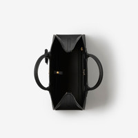 Product Details A structured tote made in Italy from grainy calf leather and lined in smooth nappa leather. The compact design features the Thomas Burberry Monogram and a leather-wrapped mirror charm. Carry in hand or by the detachable shoulder strap. - Rolled leather top handles - Detachable, adjustable shoulder strap - Open top - Exterior slip pocket, interior zip pocket, two interior slip pockets - Hand-painted edges - Polished metal hardware - Nappa leather lining - Item 80725021 Size & Fit - 32.5 x 12 x 24cm/12.8 x 4.7 x 9.5in. Min. strap drop: 48cm/18.9in. Max. strap drop: 53cm/20.9in Fabric & Care - Outer: 100% calf leather - Lining: 100% lambskin - Made in Italy