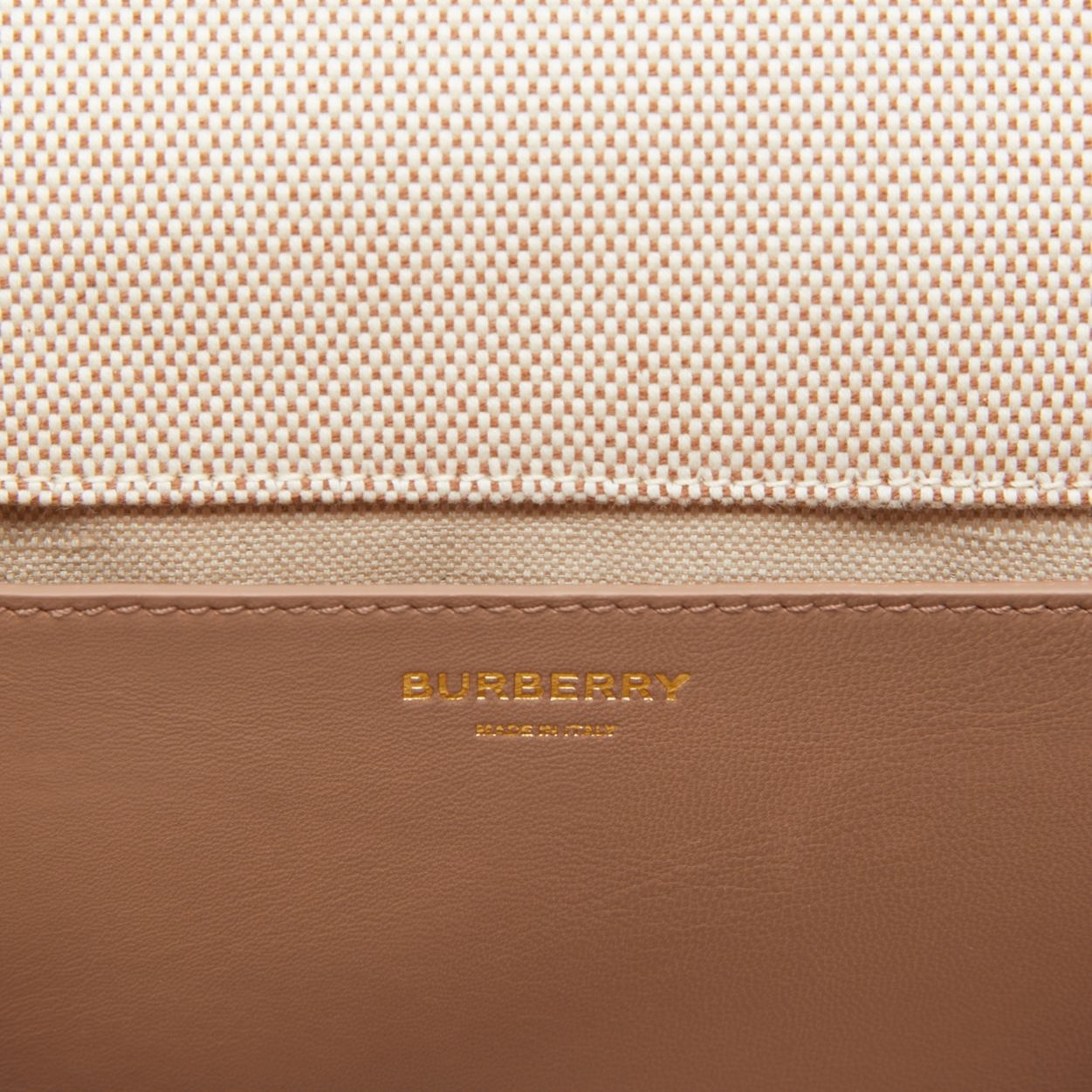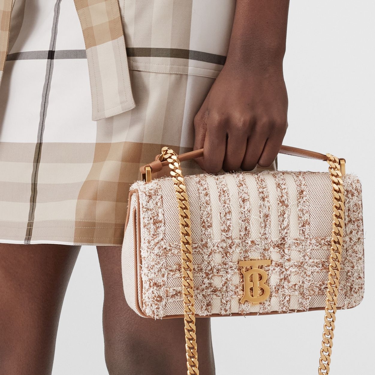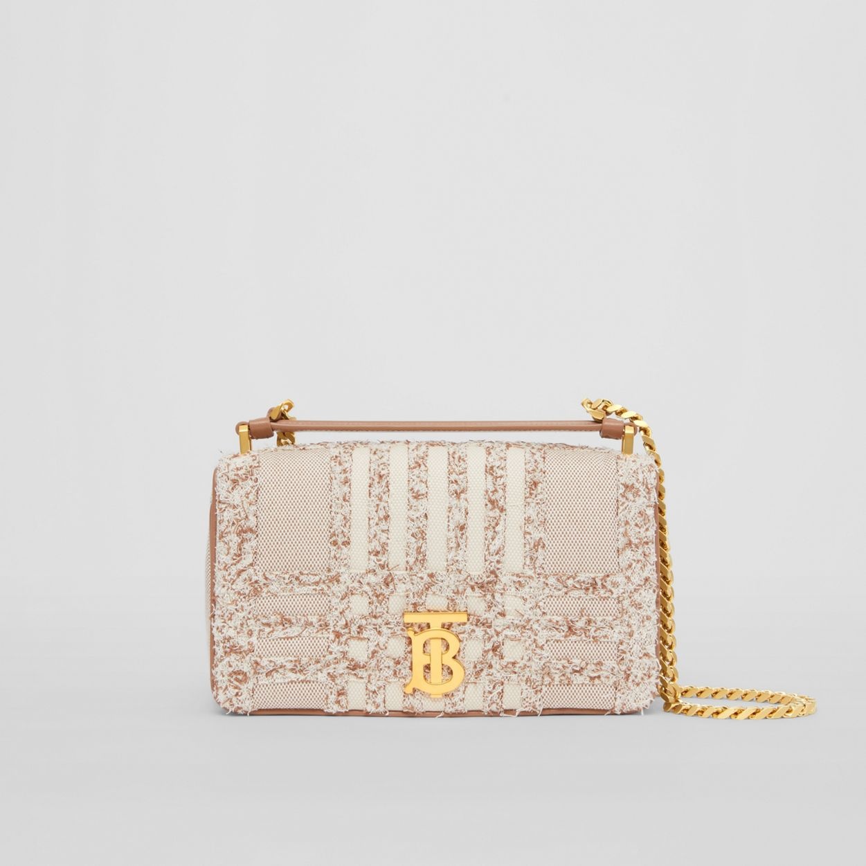 PRODUCT DETAILS A softly structured bag crafted from cotton canvas, highlighted with textural needle punch detailing inspired by the iconic Burberry check. The style is punctuated with a polished chain strap and the Thomas Burberry Monogram. Carry by the leather top handle or wear it on the shoulder. 23 x 6 x 13cm/9.1 x 2.4 x 5.1in Strap drop: 53cm/20.9in Outer: 100% cotton Trim: 100% lambskin Lining: 55% cotton, 45% linen Chain and lambskin shoulder strap One interior slip pocket Foldover top with magnetic closure Hand-painted edges Polished metal hardware Made in Italy 80559721