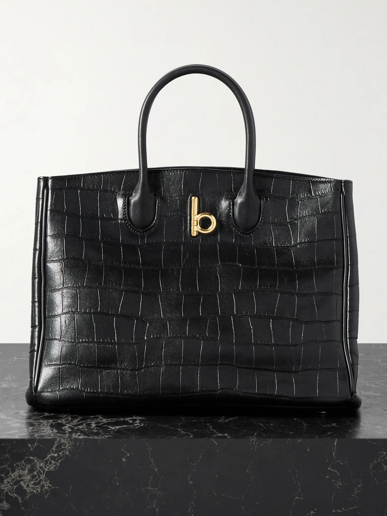 You’ll spot nods to Burberry’s heritage dotted throughout the design of this small tote. It’s been made in Italy from supple croc-effect leather, embossed with the Equestrian Knight mascot, lined with protective suede and finished with hand-painted edges. Inside, there’s plenty of room for your daily essentials and it secures with a signature ‘b’ closure. Details & Care - Black croc-effect leather (Lamb) - Two top handles, detachable and adjustable shoulder strap - Internal zipped pocket, external slip pocket - Suede lining - Clasp-fastening tab at front - Comes with dust bag