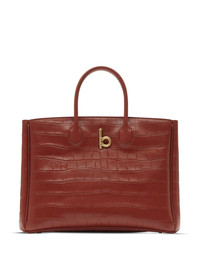 small Rocking Horse tote bag Highlights - Rust red - Calf leather - Embossed crocodile effect - Concealed press-stud fastening - Two rolled top handles - Logo plaque - Slip pocket to the rear - Metal feet Made in Italy Composition Outer: Calf Leather 100%, Lamb Skin 100% Lining: Calf Suede 100% SIZE & FIT Measurement DEPTH 5.11 in(13 cm) HEIGHT 9.44 in(24 cm) WIDTH 11.81 in(30 cm)