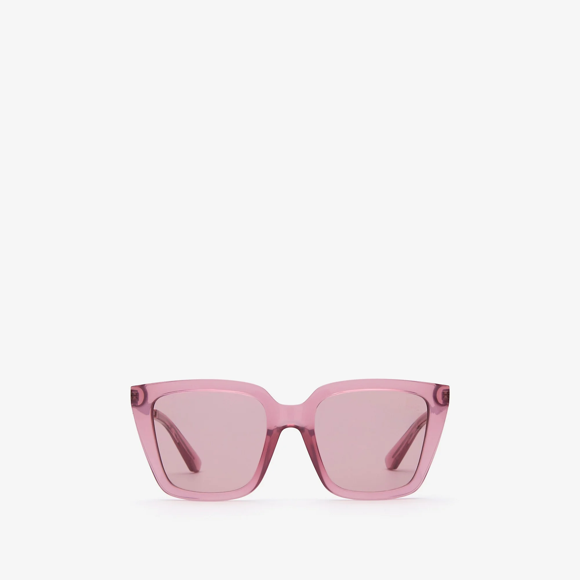 Product Details A pair of lightweight square-frame sunglasses made in Italy from transparent nylon. The contrasting metal temples are engraved with our signature check and logo. - Scratch-resistant pink lenses with 100% UV protection - Engraved Equestrian Knight Design at lens - Engraved Burberry lettering at temples - Comes with a hard leather case and cleaning cloth - Item 40849611 Size & Fit - Frame width: 14.3cm/5.6in. Frame height: 5.3cm/2.1in Fabric & Care - Frame: 100% nylon - Trim: 100% metal - Made in Italy