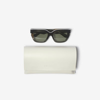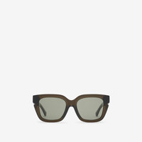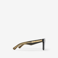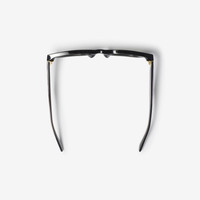 Product Details A pair of square-frame sunglasses made in Italy from acetate. The front is shaped with an angular notch and the wide temples are inlaid with brushed metal, engraved with the Burberry Check and our logo. - Scratch-resistant dark green lenses with 100% UV protection - Engraved Burberry lettering at temples - Comes with a hard leather case and cleaning cloth - Also available in an alternative fit - Item 40844971 Size & Fit - Frame width: 15.1cm/5.9in. Frame height: 5.5cm/2.2in Fabric & Care - Frame: 100% acetate* - Trim: 100% metal - *The bio-based acetate used for the frame contains at least 50% bio-based content derived from plant-based renewable resources - Made in Italy