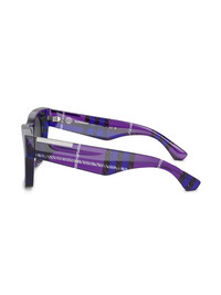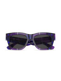 checkered wayfarer-frame sunglasses Highlights - Violet purple/electric purple - Acetate - Wayfarer frame - Grey tinted lenses - Uv-protective lenses - Check print - Logo plaque at the arm - Oversize arms - Curved tips - These glasses come with a protective case. Made in United States Composition Acetate 100% SIZE & FIT Measurement Arm Length 5.51 in(14 cm) Bridge Width 0.7 in(1.8 cm) Lens Diameter 2.04 in(5.2 cm)