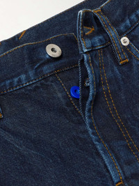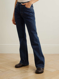 EDITORS'NOTES Burberry's jeans are cut with subtly flared legs for a cool '70s feel. They're made from indigo denim and have a bold blue suede patch at the back embroidered with the signature equestrian knight motif. The high-rise waist lends itself well to tucked-in blouses or tees. SIZE & FIT Model measurements: - Fits true to size, take your normal size - High-rise, designed for a slim fit with a flared hem - Mid-weight, non-stretchy denim - Size 27 jeans have an inside leg of 33.5"/ 85cm - Model is 177cm/ 5'10" and is wearing a size 27 - Bust: 81cm/ 32" - Waist: 68cm/ 27" - Hip: 94cm/ 37" DETAILS & CARE - Indigo denim - Partially concealed button fastenings along front - 100% cotton