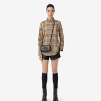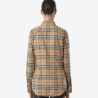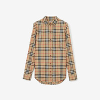 Product Details A shirt in stretch cotton twill woven with the Burberry Check. The design is cut to a slim fit and features a grosgrain Icon stripe ribbon concealed at the placket and cuffs. - Button closure - Single-button cuffs - Button-down collar - Chest patch pocket - Curved hem - Slim fit: this style is cut to a fitted silhouette. Fits true to size, take your normal size. - Machine wash - Item 80222841 Size & Fit - Length: 73cm/29in. (size UK 6) - Model’s height: 177cm/5ft 10in. Model wears size UK 6 Fabric & Care - 95% cotton, 5% elastane - Trim: 100% polyester - Imported