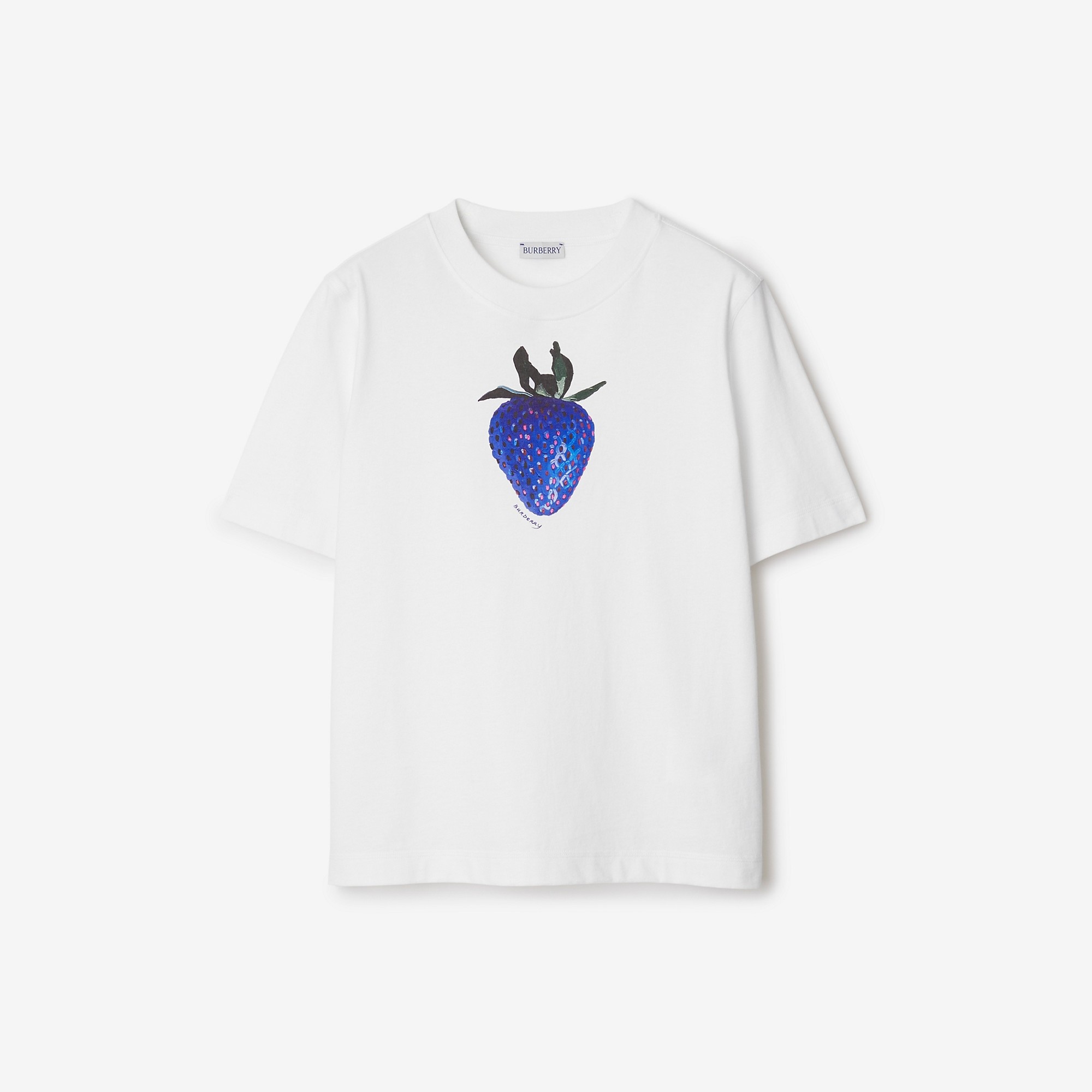 PRODUCT DETAILS A crew-neck T-shirt in cotton jersey, printed with a logo and hand-painted strawberry artwork. The style is cut to a regular fit. - Length: 61cm/24in (size UK S) - Model’s height: 177cm/5ft 10in. Model wears size UK S Regular fit 100% cotton Trim: 97% cotton, 3% elastane Machine wash Made in Portugal Item 80893681