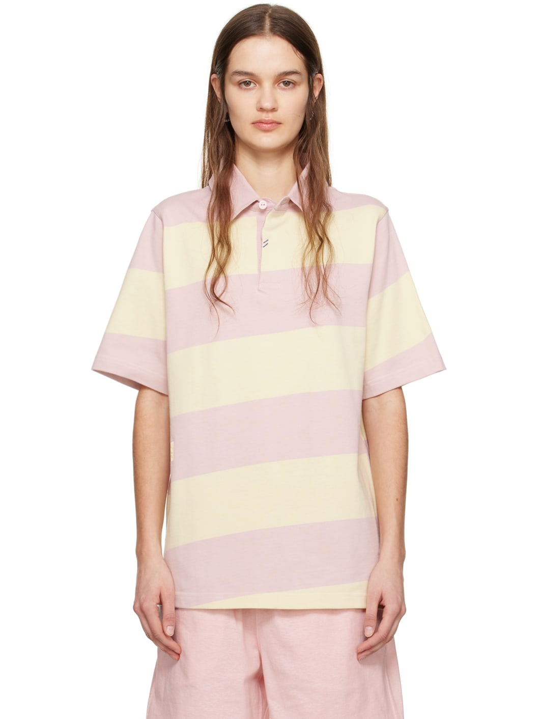 Cotton jersey polo. Stripes throughout. · Pointed collar · Concealed three-button placket · Logo printed at front · Tennis-tail hem · Rib knit cuffs Supplier color: Cameo